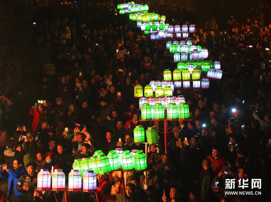 15日,湖南衡陽縣界牌鎮(zhèn)舉行火燈節(jié)民俗活動,居民們點亮火把、紅燭,彩燈等,走街串巷,祈求一年風調雨順、農業(yè)生產豐收、社會平安和諧。新華社發(fā)(曹正平 攝)