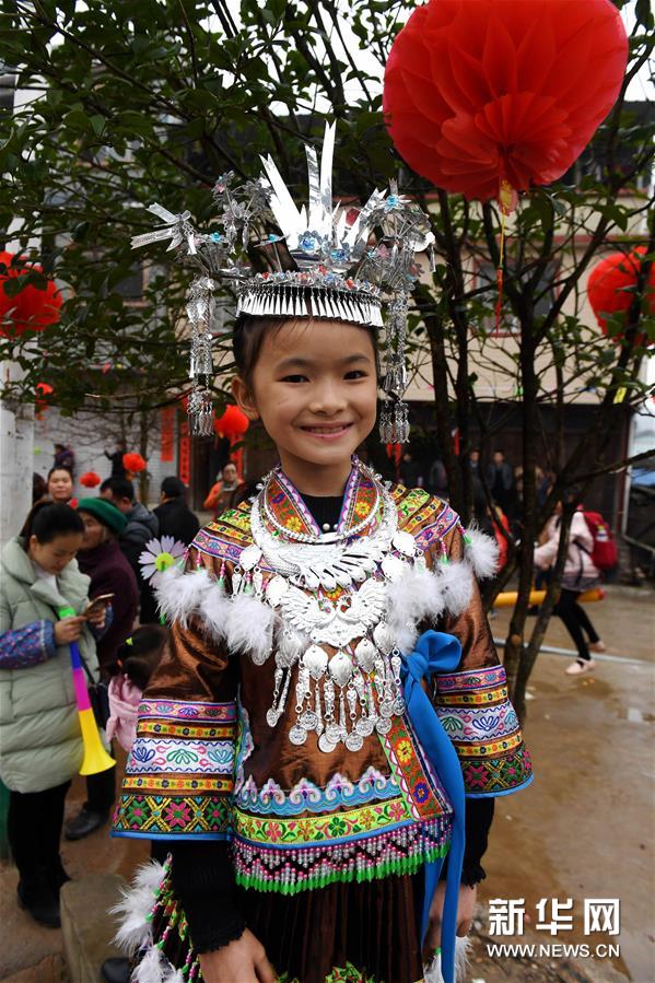 2月7日,廣西融水苗族自治縣安太鄉(xiāng)苗族群眾開(kāi)展傳統(tǒng)的“打同年”民俗活動(dòng)。當(dāng)?shù)財(cái)?shù)百名苗族同胞與游客們歡聚一堂,一起開(kāi)展對(duì)歌、蘆笙踩堂、文藝晚會(huì)等活動(dòng),歡慶新春佳節(jié)。 “打同年”是融水苗族村寨的一種民俗,即友好村寨之間的拜年聯(lián)歡活動(dòng)。新華社記者 李斌 攝