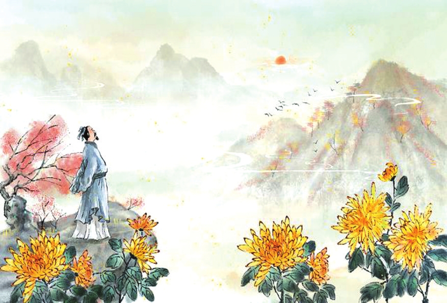 東晉詩(shī)人陶淵明在《九日閑居》一詩(shī)序文中曰:“余閑居,愛(ài)重九之名。秋菊盈園,而持醪靡由,空服九華,寄懷于言。”孫思邈的《千金方月令》也稱(chēng):“重陽(yáng)日,必以看酒登高遠(yuǎn)眺,為時(shí)宴之游賞,以暢秋志。酒必采茱萸、菊以泛之,即醉而歸?!碧拼蹙S的詩(shī)句膾炙人口:“遙知兄弟登高處,遍插茱萸少一人?!倍拍痢毒湃正R山登高》詩(shī)云:“塵世難逢開(kāi)口笑,菊花須插滿(mǎn)頭歸?!鼻宕本┲仃?yáng)節(jié)的習(xí)俗是把菊花枝葉貼在門(mén)窗上,“解除兇穢,以招吉祥”。