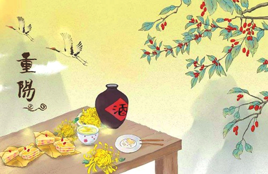“重陽(yáng)”的名稱(chēng),來(lái)自《易經(jīng)》中的“以陽(yáng)爻為九”。農(nóng)歷九月初九,日與月皆逢九,是謂“兩九相重”,故曰“重九”,同時(shí)又是兩個(gè)陽(yáng)數(shù)合在一起,故謂之“重陽(yáng)”。明代張岱的《夜航船》云:“九為陽(yáng)數(shù),其日與月并應(yīng),故曰‘重陽(yáng)’。”