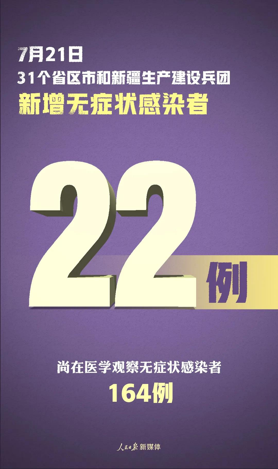 31個(gè)省(自治區(qū)、直轄市)和新疆生產(chǎn)建設(shè)兵團(tuán)報(bào)告新增無癥狀感染者22例(境外輸入8例);當(dāng)日無轉(zhuǎn)為確診病例;當(dāng)日解除醫(yī)學(xué)觀察7例(境外輸入4例);尚在醫(yī)學(xué)觀察無癥狀感染者164例(境外輸入84例)。