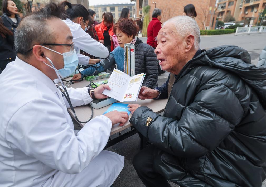 2023年12月13日,在浙江省湖州市吳興區(qū)道場鄉(xiāng)浮玉社區(qū)內(nèi),藥店藥劑師給居民普及安全用藥知識。新華社記者徐昱 攝