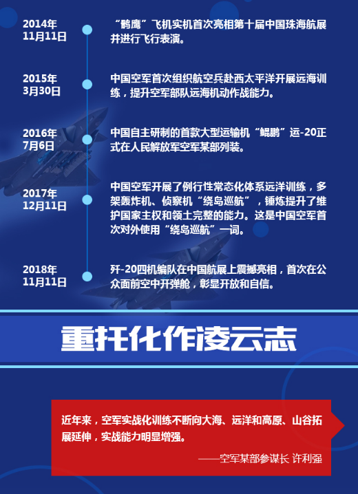 今年是新中國成立70周年,也是中國空軍建軍70周年。中國空軍以習(xí)近平強(qiáng)軍思想為指引,緊緊圍繞黨在新時(shí)代的強(qiáng)軍目標(biāo),部署和推進(jìn)了一系列戰(zhàn)略布局和戰(zhàn)略舉措。