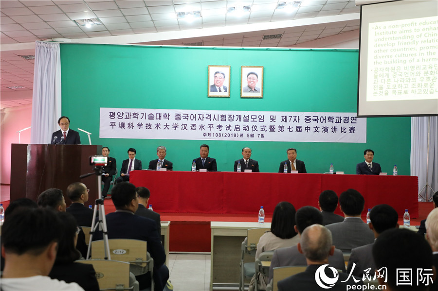 朝鮮首家漢語考試中心在平壤科技大學(xué)舉行揭牌儀式。(人民網(wǎng)記者 莽九晨攝)
