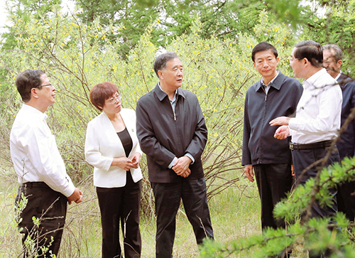 近日,中共中央政治局常委、全國(guó)政協(xié)主席汪洋在山西省右玉縣調(diào)研脫貧攻堅(jiān)工作。這是6月5日,汪洋在右玉縣四五道嶺考察植樹造林、水土保持、生態(tài)綜合治理情況。新華社記者 劉衛(wèi)兵 攝