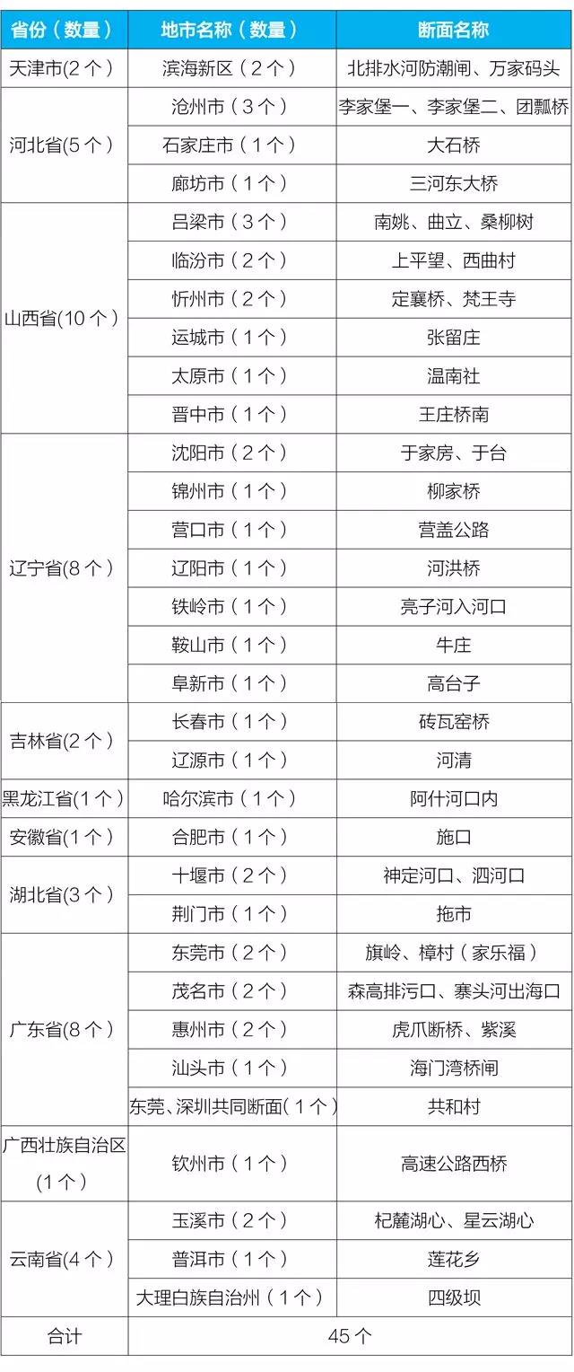 1-5月平均及5月份單月均為劣Ⅴ類的國(guó)控?cái)嗝婀灿?jì)45個(gè),數(shù)量較多的省份是:山西(10個(gè))、遼寧(8個(gè))、廣東(8個(gè))、河北(5個(gè));數(shù)量較多的地市是:呂梁(3個(gè))、滄州(3個(gè))。