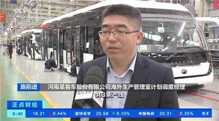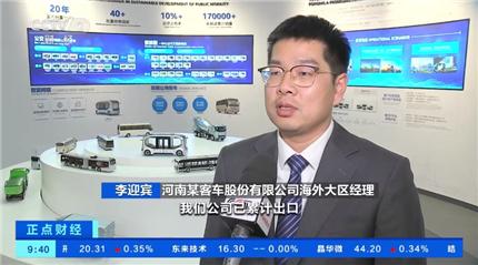河南某客車股份有限公司海外大區(qū)經(jīng)理李迎賓:截至今年上半年,我們公司已累計(jì)出口各類客車超過90000輛,其中新能源客車出口累計(jì)超3700輛,在中亞、中東、歐洲、非洲、拉美等30多個(gè)國家和地區(qū)形成批量銷售。
