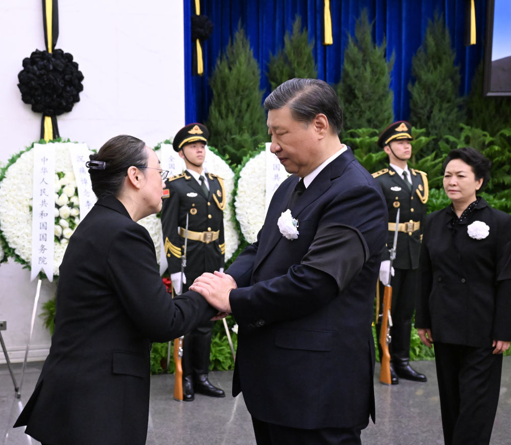 上午9時(shí)許,習(xí)近平和夫人彭麗媛,李強(qiáng)、趙樂(lè)際、王滬寧、蔡奇、丁薛祥、李希、韓正等,在哀樂(lè)聲中緩步來(lái)到李克強(qiáng)同志的遺體前肅立默哀,向李克強(qiáng)同志的遺體三鞠躬,并與李克強(qiáng)同志親屬一一握手,表示慰問(wèn)。胡錦濤送花圈,對(duì)李克強(qiáng)同志逝世表示哀悼。