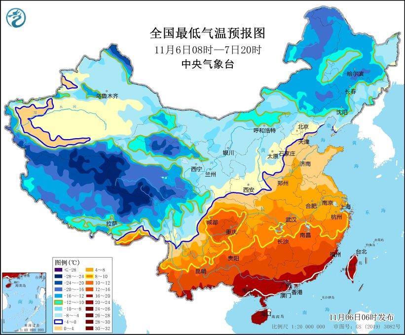 寒潮藍(lán)色預(yù)警:受強(qiáng)冷空氣影響,預(yù)計(jì),11月6日08時(shí)至11月7日20時(shí),內(nèi)蒙古東部、東北地區(qū)中南部、黃淮東部、江淮東部和南部、江南東部等地大部將先后降溫6~8℃,其中,內(nèi)蒙古東南部、東北地區(qū)中南部等地部分地區(qū)降溫可達(dá)10~14℃。最低氣溫0℃線將位于河北北部、天津北部、山西南部至陜西關(guān)中平原、甘肅東南部一帶,長(zhǎng)江中下游以北地區(qū)有4~6級(jí)偏北風(fēng),陣風(fēng)7~9級(jí),局地可達(dá)10級(jí);6日至7日夜間,渤海、黃海、東海等海域有7~8級(jí)風(fēng),最大陣風(fēng)9~11級(jí)。
