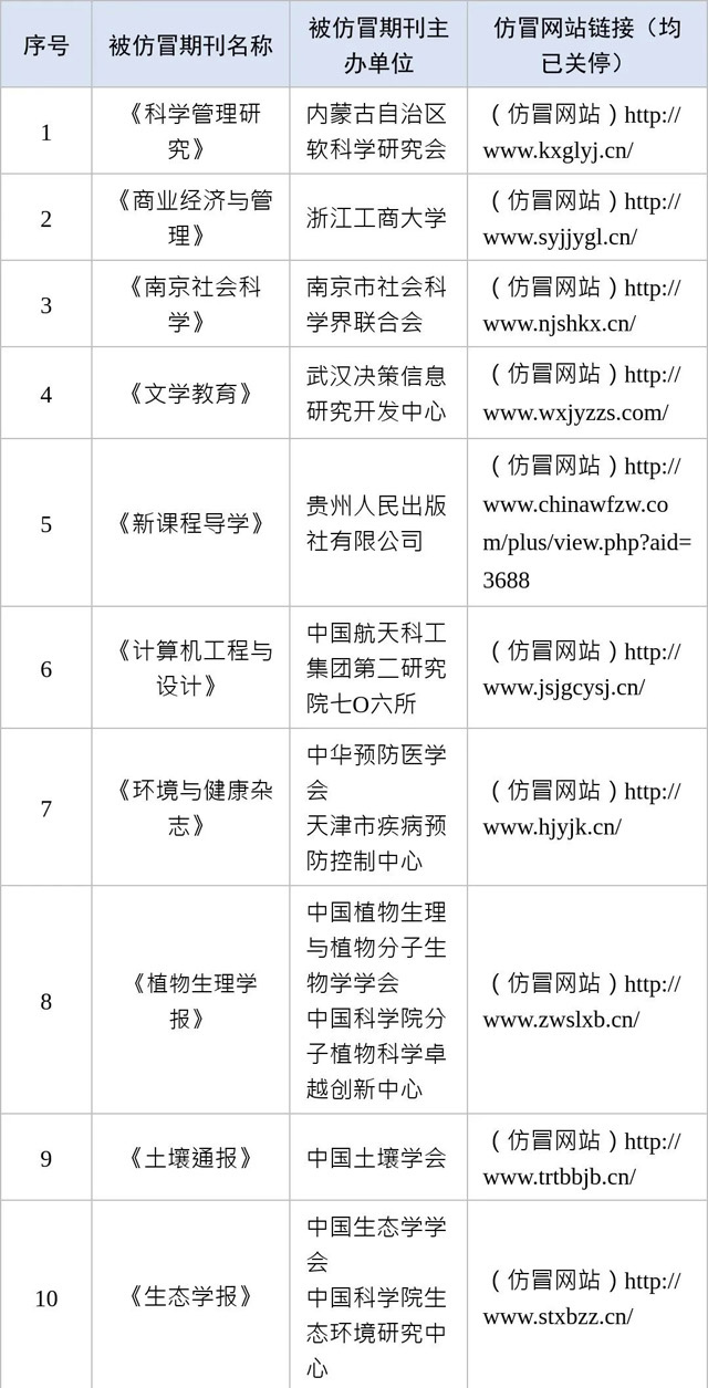 仿冒學(xué)術(shù)期刊網(wǎng)站名單