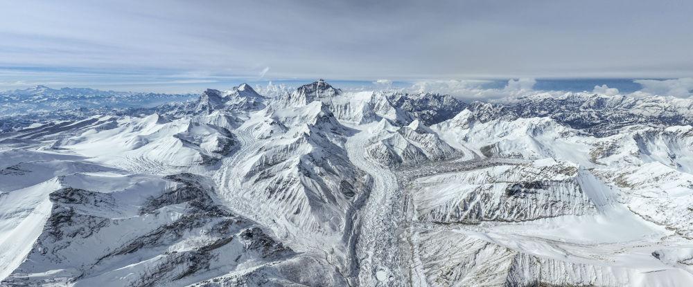 這是在海拔8400米左右高空拍攝的珠穆朗瑪峰和喜馬拉雅山脈群山(5月23日攝,無(wú)人機(jī)照片)。