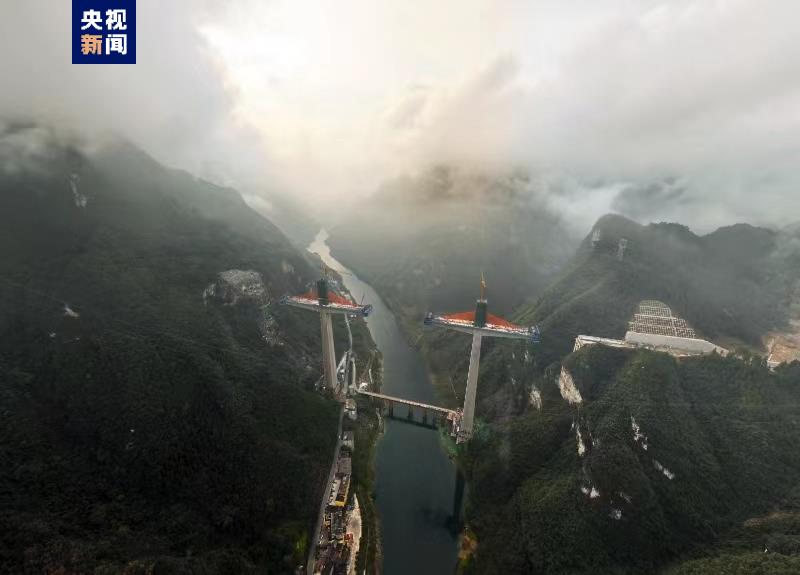 亞洲第一高墩矮塔斜拉橋磨寨烏江特大橋索塔封頂