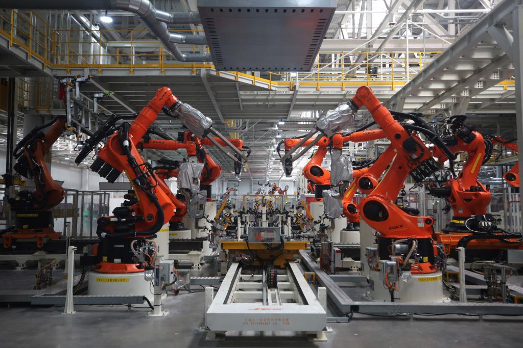 位于安徽合肥的大眾安徽模塊化電驅(qū)動(dòng)平臺(tái)工廠車身車間一角。新華社記者杜瀟逸 攝
