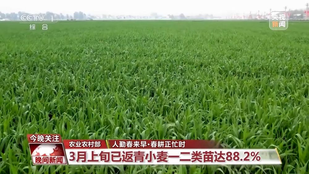 今年,全國冬小麥面積保持穩(wěn)定。目前,北方冬小麥大部已返青,長江中下游的冬小麥拔節(jié)起身,西南地區(qū)正在抽穗。據(jù)農業(yè)農村部農情調度,3月上旬,已返青小麥一二類苗達88.2%,比去年同期高0.7個百分點,比近五年平均高1.8個百分點。