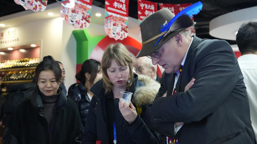 2月21日,德國(guó)企業(yè)代表在到訪(fǎng)寧夏期間品嘗當(dāng)?shù)靥厣r(nóng)產(chǎn)品。新華社記者 劉海 攝