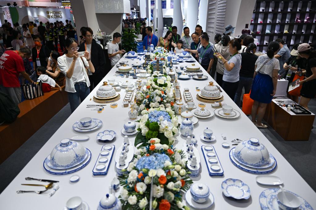 “匠從八方來(lái),器成天下走?!本澜^倫的瓷器,成為消博會(huì)上中西文化交流、交融的生動(dòng)載體:一側(cè),由歐洲瓷器產(chǎn)品組成的美學(xué)意境館里,繪制著中國(guó)傳統(tǒng)青花圖案的茶具亮相其中;另一側(cè),“千年瓷都”中國(guó)景德鎮(zhèn)陶瓷品牌館,塔吉克斯坦紋飾的咖啡具格外吸睛。