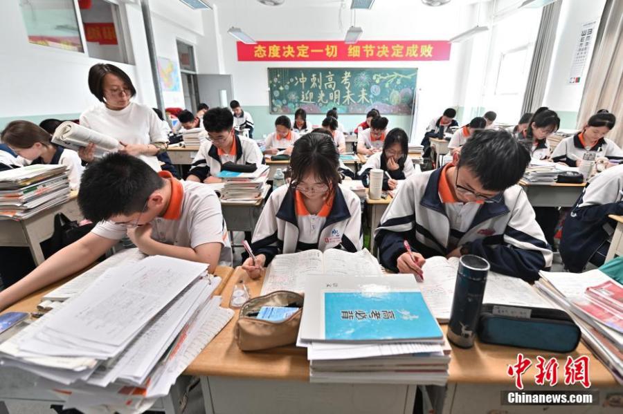 高三學(xué)子在教室內(nèi)緊張復(fù)習(xí),備戰(zhàn)即將到來的2024年高考。中新網(wǎng)記者 韋亮 攝