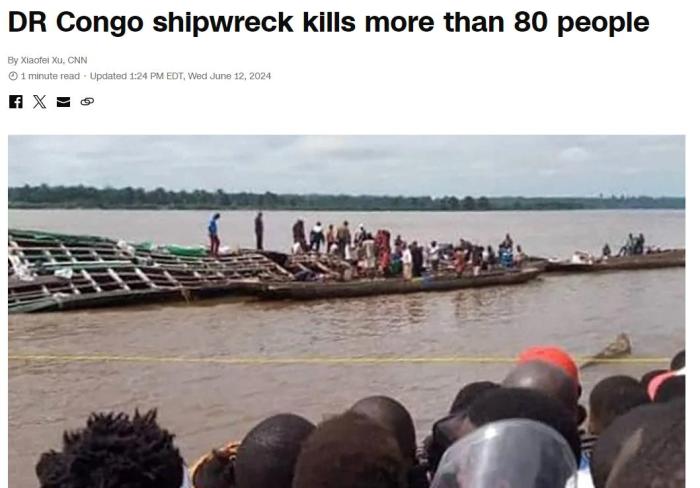 報道稱,由于剛果(金)境內河流湖泊密布,同時缺乏道路基礎設施,乘船是居民出行的主要方式之一,過去數年以來,該國多次發(fā)生致命的沉船事故。2023年10月,一艘載有300多名乘客的船只在剛果河傾覆,造成至少52人死亡。