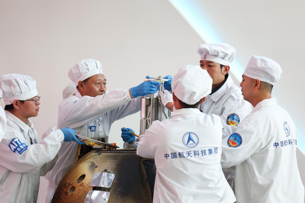6月26日下午,科研人員對嫦娥六號返回器進(jìn)行開艙,檢驗關(guān)鍵技術(shù)指標(biāo)完成情況。新華社記者 金立旺 攝