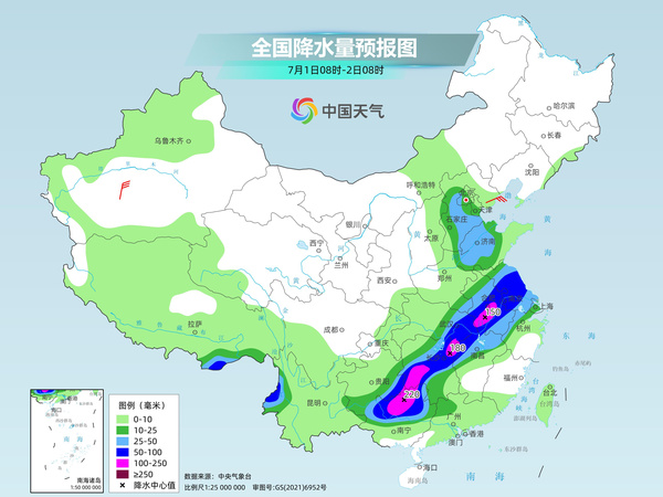 未來三天,副熱帶高壓外圍暖濕氣流非常強(qiáng)盛、并持續(xù)北上,冷暖空氣交匯之下,廣西北部、貴州至長江中下游地區(qū)將有持續(xù)強(qiáng)降雨天氣,降雨強(qiáng)度大、持續(xù)時(shí)間長、雨帶位置穩(wěn)定少動(dòng),部分地區(qū)有大暴雨,局地特大暴雨。同時(shí),華北、東北等地多陣雨或雷陣雨天氣,以小到中雨為主,局地伴有強(qiáng)對流天氣。