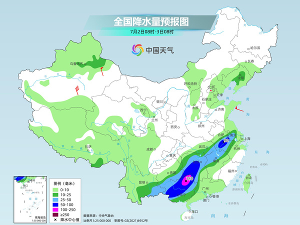 后天,遼寧中部、新疆沿天山地區(qū)、江淮大部、江漢東部、江南北部和西部、西南地區(qū)南部、華南北部和西部等地部分地區(qū)有中到大雨,其中,安徽中南部、湖南西南部、廣西北部和西部等地部分地區(qū)有暴雨或大暴雨。