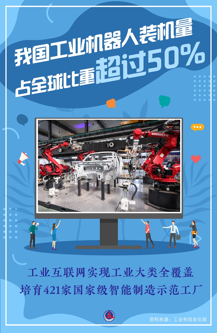 新華社北京7月5日電(記者張辛欣、王悅陽)工業(yè)和信息化部副部長辛國斌在5日國新辦舉行的“推動高質量發(fā)展”系列主題新聞發(fā)布會上說,目前,我國工業(yè)機器人裝機量占全球比重超過50%,工業(yè)互聯網實現工業(yè)大類全覆蓋,培育421家國家級智能制造示范工廠。