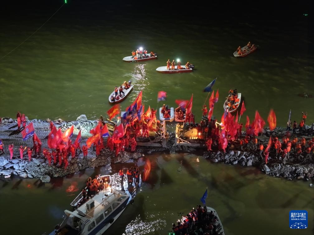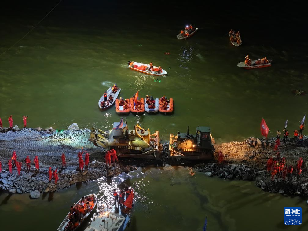 新華社湖南華容7月8日電 8日22時31分,記者在湖南華容縣團洲垸洞庭湖大堤決口封堵現(xiàn)場看到,團洲垸洞庭湖大堤決口完成封堵。