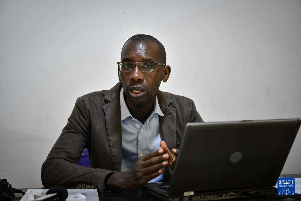 7月8日,在幾內(nèi)亞比紹首都比紹的中幾比友誼醫(yī)院,院長(zhǎng)拉馬略·昆達(dá)接受新華社記者采訪(fǎng)。新華社記者 韓旭 攝