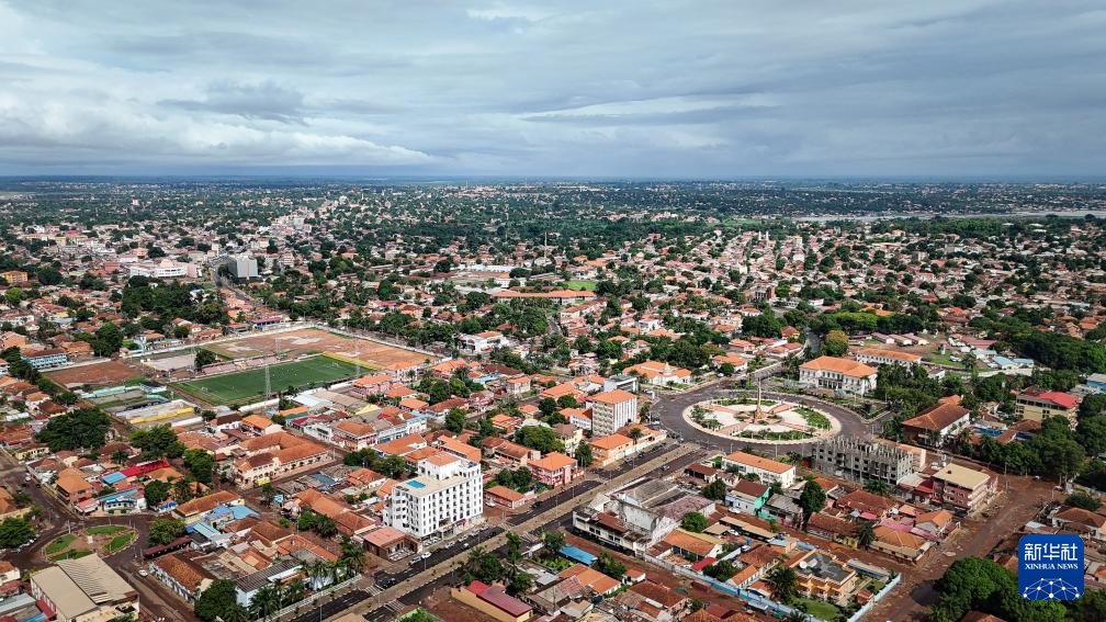 這是7月7日在幾內(nèi)亞比紹首都比紹拍攝的城市風(fēng)光(無(wú)人機(jī)照片)。新華社記者 韓旭 攝