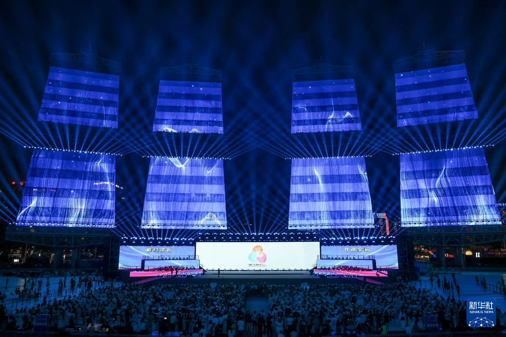11月9日,十五運(yùn)會(huì)的主題口號(hào)“激情全運(yùn)會(huì),活力大灣區(qū)”和殘?zhí)貖W會(huì)的主題口號(hào)“追夢大灣區(qū),出彩人生路”在儀式上發(fā)布。新華社記者 劉大偉 攝