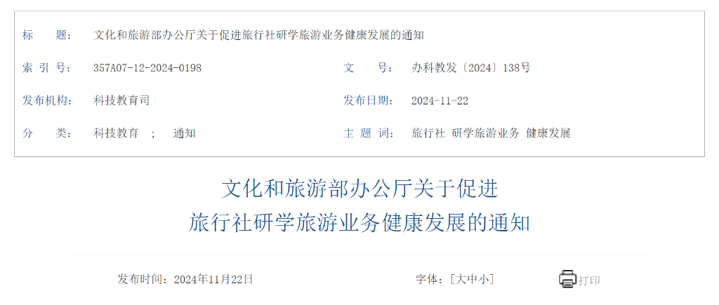 根據(jù)通知,各級文化和旅游行政部門要把研學(xué)旅游作為推動文化和旅游深度融合發(fā)展,加快實(shí)現(xiàn)旅游強(qiáng)國目標(biāo)的重要內(nèi)容,積極推廣研學(xué)旅游經(jīng)營中的規(guī)范行為和創(chuàng)新舉措,引導(dǎo)全社會認(rèn)識研學(xué)旅游活動的積極意義,理性選擇研學(xué)旅游產(chǎn)品。