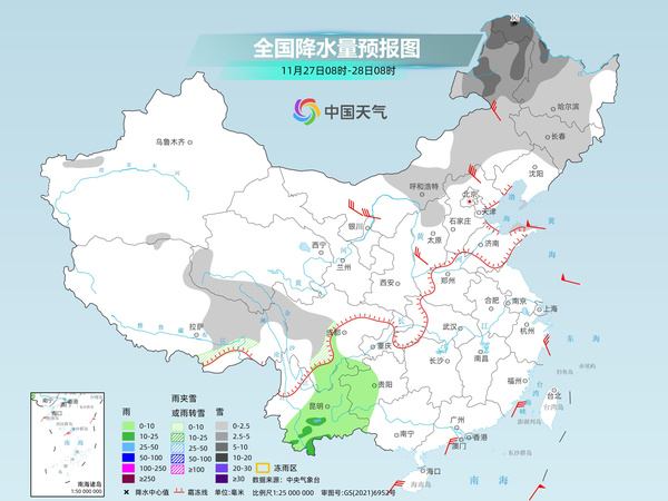 明天,內(nèi)蒙古東部、東北地區(qū)中北部、青海南部、西藏東部、川西高原北部等地部分地區(qū)有小雪或雨夾雪,其中,黑龍江中西部、吉林東部等地部分地區(qū)有中到大雪,黑龍江西北部等地局地暴雪。西南地區(qū)南部等地部分地區(qū)有小雨,其中,云南西南部等地部分地區(qū)有中雨。