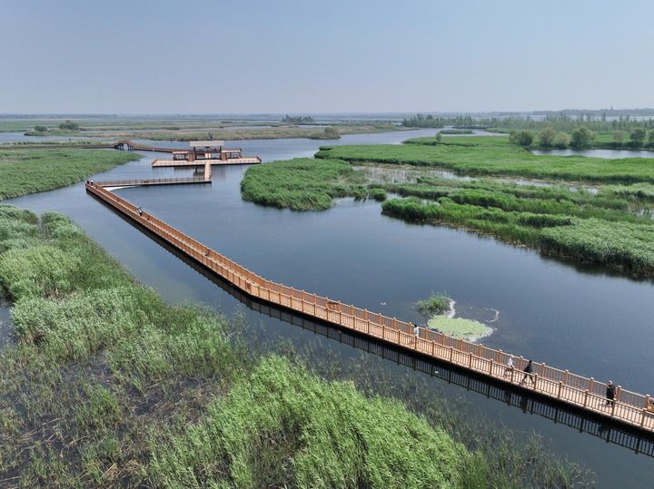 在中線,通過汛期洪水資源化利用,助力北方地區(qū)50多條河流生態(tài)復(fù)蘇。永定河、潮白河、滹沱河等一大批斷流多年的河流恢復(fù)全線通水,再現(xiàn)流動之美。世界上最大、最深的“漏斗區(qū)”華北地區(qū)地下水位實(shí)現(xiàn)總體回升?!叭A北明珠”白洋淀淀區(qū)面積擴(kuò)大到近300平方公里,再現(xiàn)“荷塘葦海、鳥類天堂”勝景。