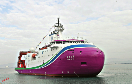 “探索三號”船長約104米,滿載排水量約10000噸,最大航速16節(jié),定員80人,續(xù)航力15000海里。該船設(shè)計(jì)實(shí)現(xiàn)了冰區(qū)船舶總體設(shè)計(jì)技術(shù)、智能控制技術(shù)、低溫精確補(bǔ)償技術(shù)、冰區(qū)載荷與重載荷結(jié)構(gòu)集成設(shè)計(jì)等多項(xiàng)關(guān)鍵技術(shù)的自主可控,配備了適應(yīng)冰區(qū)作業(yè)的全國產(chǎn)化科考作業(yè)裝備。創(chuàng)新性融合了包括深潛和極區(qū)在內(nèi)的應(yīng)用場景,建立了船岸協(xié)同的智能船舶管理平臺。