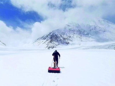 何曉波團(tuán)隊(duì)將冬克瑪?shù)妆ūO(jiān)測(cè)“武裝到了牙齒”,從5300米到5800米,每100米一個(gè)梯度,水文氣象站、激光雷達(dá)……2024年夏天,何曉波和團(tuán)隊(duì)嘗試使用無人機(jī)搭載非接觸探地雷達(dá),探測(cè)冰川厚度?!拔覀兿M麑⒍爽?shù)妆ㄗ鳛閰⒖夹员?,通過更精準(zhǔn)、更自動(dòng)化的監(jiān)測(cè),研究它的消融機(jī)理,這里的監(jiān)測(cè)做好了,就可以推行到其他冰川研究上?!彼硎?。