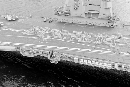 3日上午8時(shí)許,山東艦和3艘屬艦組成縱隊(duì)隊(duì)形,在香港特區(qū)政府船隊(duì)、駐香港部隊(duì)艦艇、直升機(jī)伴航伴飛下,駛?cè)刖S多利亞港。山東艦飛行甲板上,艦載戰(zhàn)斗機(jī)、直升機(jī)列陣,700余名海軍官兵身著白色軍裝,列隊(duì)排出“國(guó)安家好”4個(gè)大字,表達(dá)愛(ài)國(guó)愛(ài)港的濃濃深情和對(duì)香港同胞的美好祝福。海上,香港特區(qū)消防船用“水門(mén)禮”歡迎編隊(duì);空中,香港特區(qū)伴飛直升機(jī)現(xiàn)場(chǎng)直播編隊(duì)進(jìn)港實(shí)況;岸邊的民眾隔海向來(lái)訪官兵揮手致意。按照預(yù)定方案,山東艦和延安艦在維多利亞港西錨地錨泊,湛江艦和運(yùn)城艦??堪捍捃姞I(yíng)碼頭。