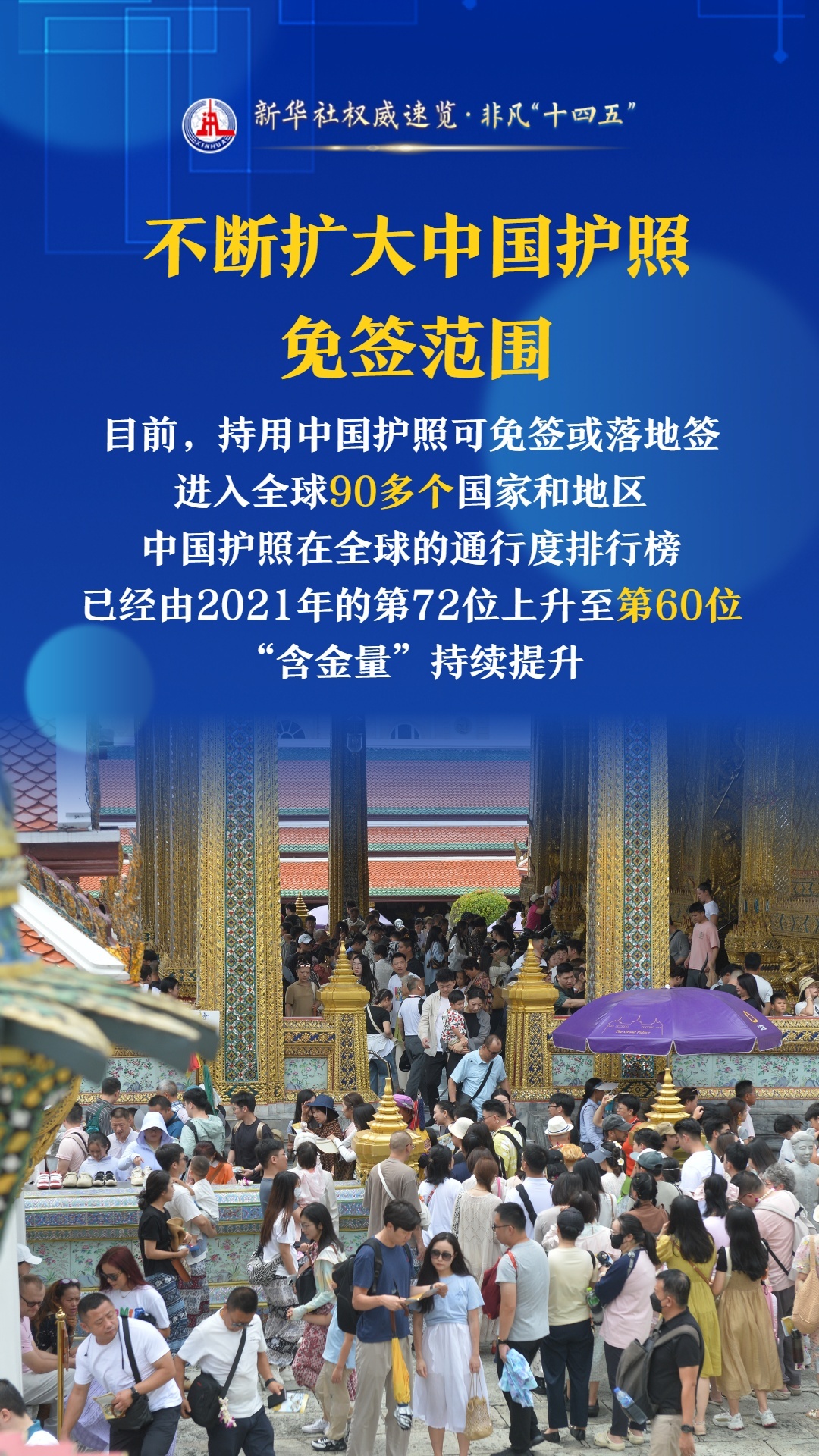 ?“全程網(wǎng)辦”實(shí)現(xiàn)了辦理出入境證件“一次都不跑”,中國公民“走出去”更加便利;中國護(hù)照在全球的通行度排行榜由2021年的第72位上升至第60位,中國護(hù)照“含金量”持續(xù)提升。30日舉行的“高質(zhì)量完成‘十四五’規(guī)劃”新聞發(fā)布會(huì)上,國家移民局介紹了在服務(wù)中國公民“走出去”方面取得的成就。通過這組海報(bào),一起來看看。