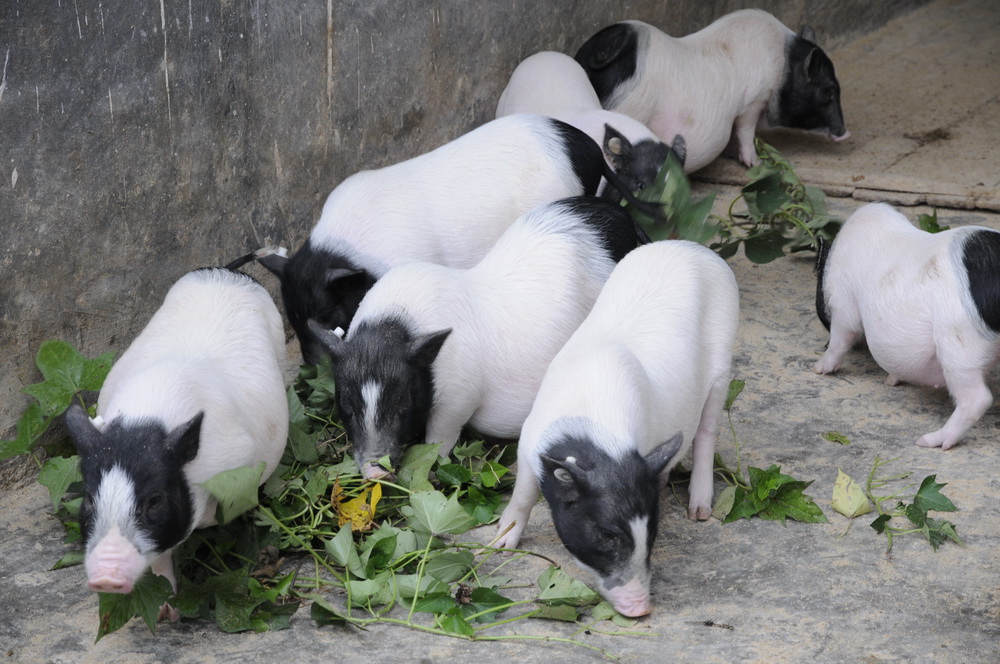 圖為廣西河池市巴馬縣“巴馬香豬原產(chǎn)地保護(hù)基地”養(yǎng)殖的巴馬香豬。(新華社簽約攝影師圖片)
