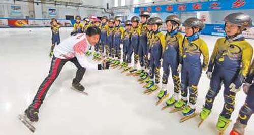 屈膝、揚臂,如箭一般沖出起跑線;加速、過彎,再加速……敏捷的小運動員們在冰面上留下優(yōu)雅曲線。冰場中央的董延海,手握秒表、眼觀賽道,正在為我國的短道速滑運動挖掘更多好苗子。