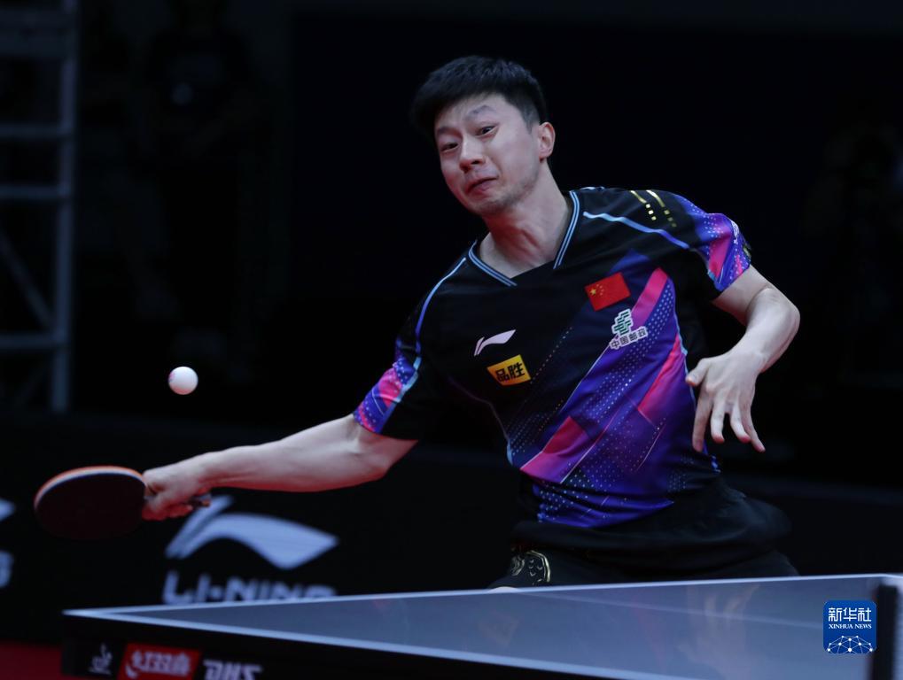 9月10日,馬龍在比賽中回球。新華社發(fā)(李相浩攝)