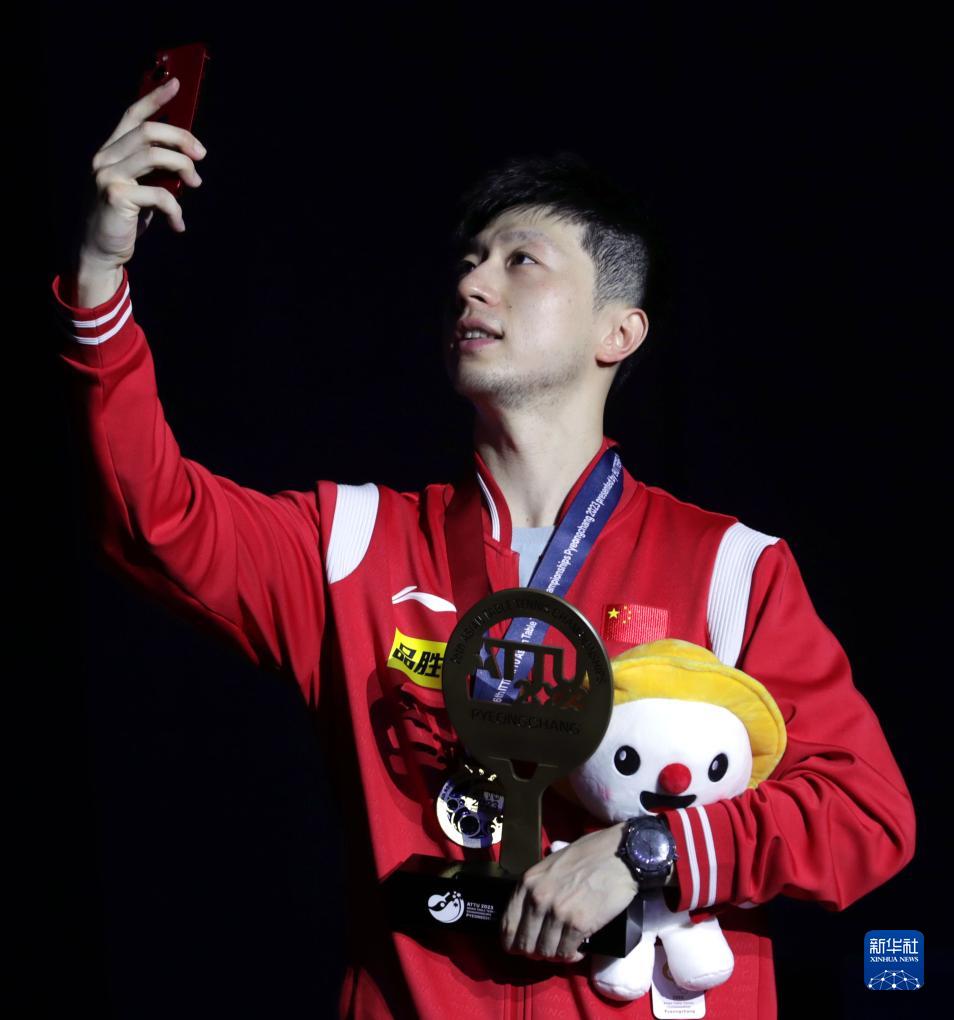9月10日,馬龍在頒獎儀式上自拍留念。新華社發(fā)(李相浩攝)