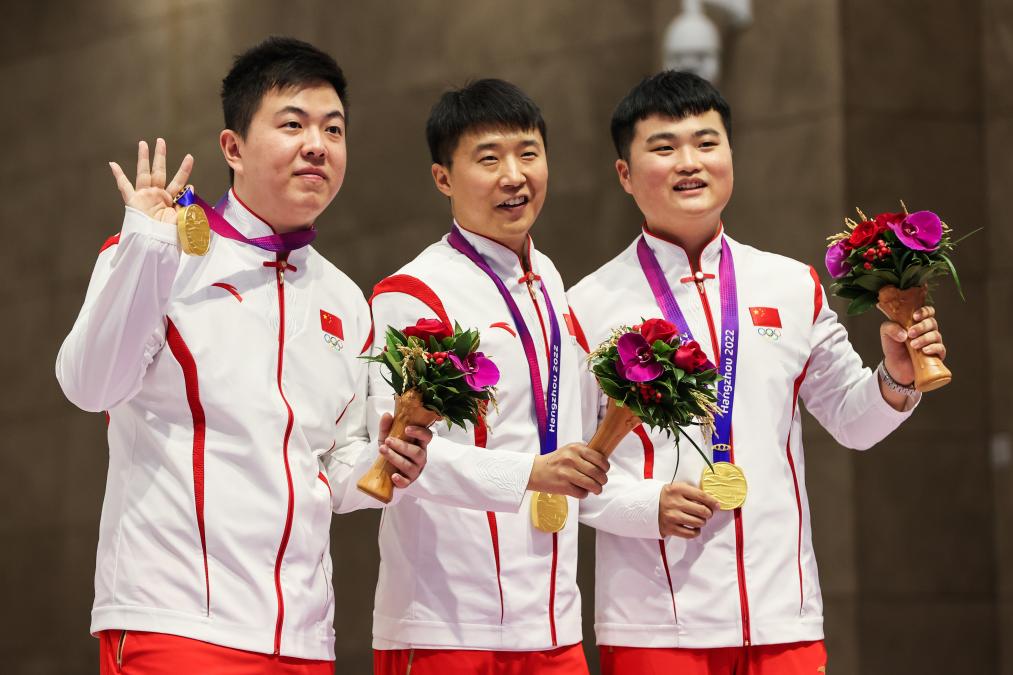 9月25日,男子25米手槍速射爭(zhēng)奪中,王鑫杰、劉楊攀、李越宏組成的中國(guó)隊(duì)以1765環(huán)的破世界紀(jì)錄成績(jī)奪得團(tuán)體冠軍。