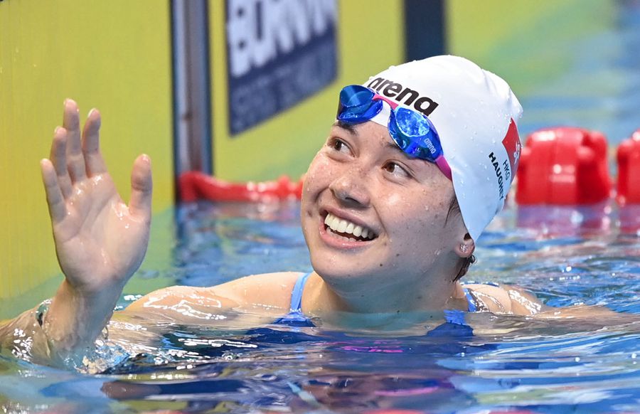 9月26日,中國(guó)香港名將何詩(shī)蓓以52秒17打破女子100米自由泳亞洲紀(jì)錄并奪冠,這也是她本屆賽事的第二枚金牌。