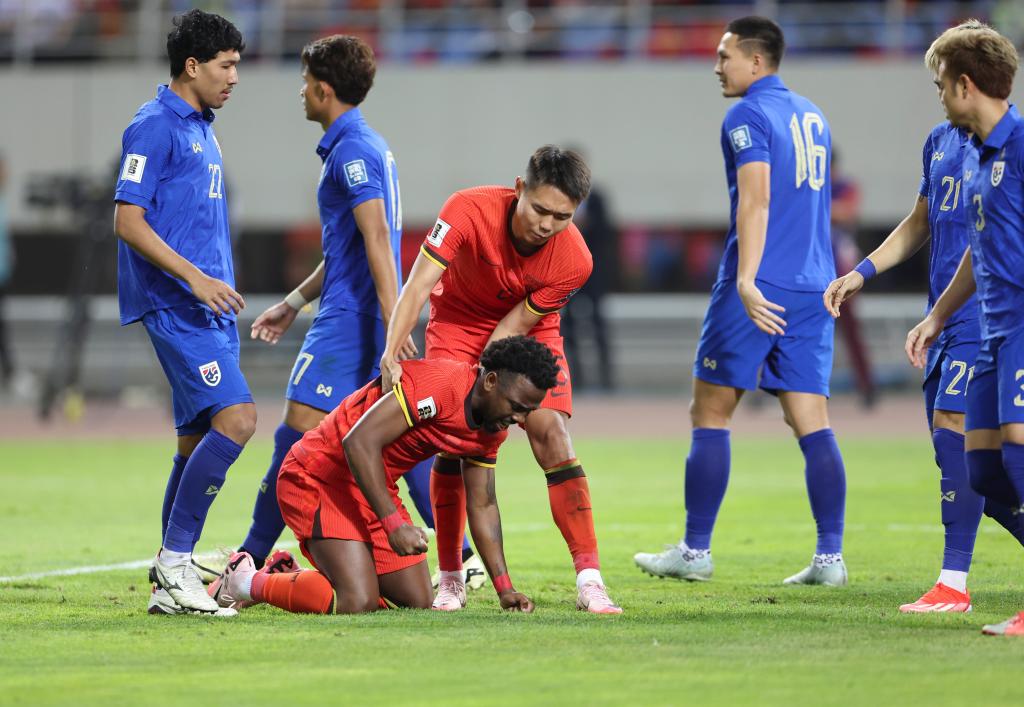 新華社沈陽6月6日電(記者張逸飛、公兵、肖世堯)比賽最后階段潮水般的進(jìn)攻沒能彌補(bǔ)錯(cuò)失點(diǎn)球的遺憾,中國男足在6日進(jìn)行的2026年美加墨世界杯亞洲區(qū)預(yù)選賽36強(qiáng)賽第五輪主場對陣泰國隊(duì)的比賽中,憑借拜合拉木下半場的進(jìn)球,以1:1戰(zhàn)平對手。