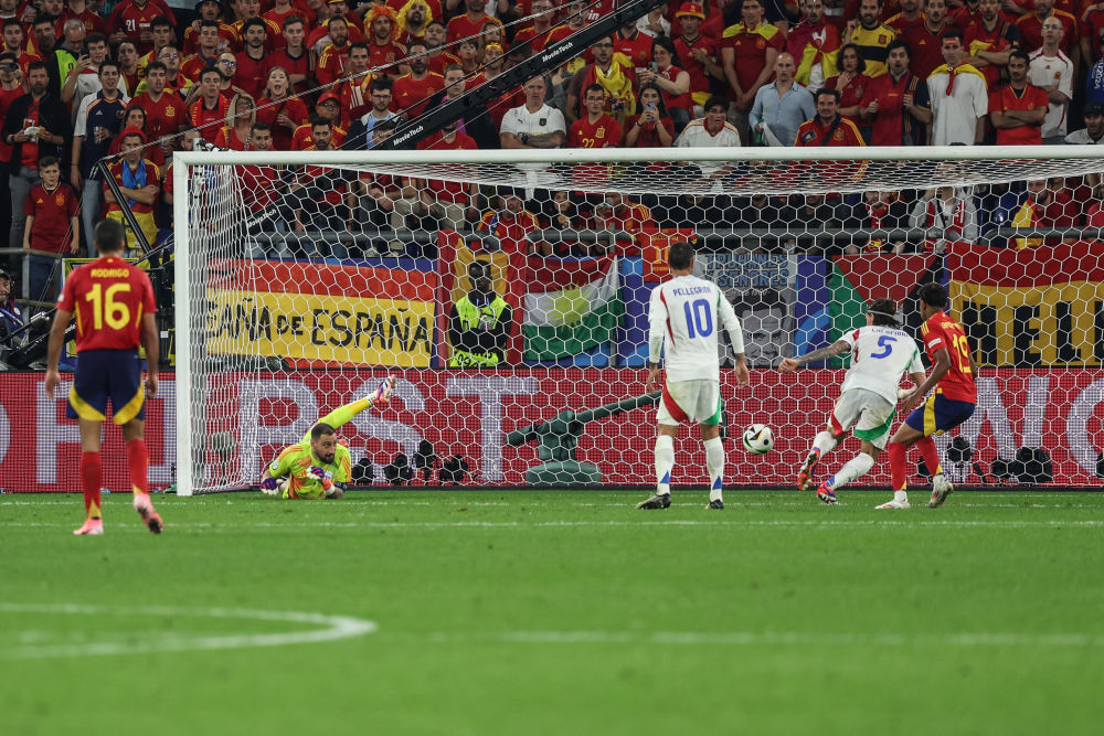 下半場西班牙隊延續(xù)攻勢,威廉姆斯繼續(xù)成為球隊爆點,與他對位的意大利隊邊后衛(wèi)迪洛倫佐苦不堪言。第55分鐘,威廉姆斯邊路傳中,莫拉塔前點頭球攻門被唐納魯馬單掌撲出,但意大利隊后衛(wèi)卡拉菲奧里避閃不及自擺烏龍,“斗牛士”軍團1:0領(lǐng)先。