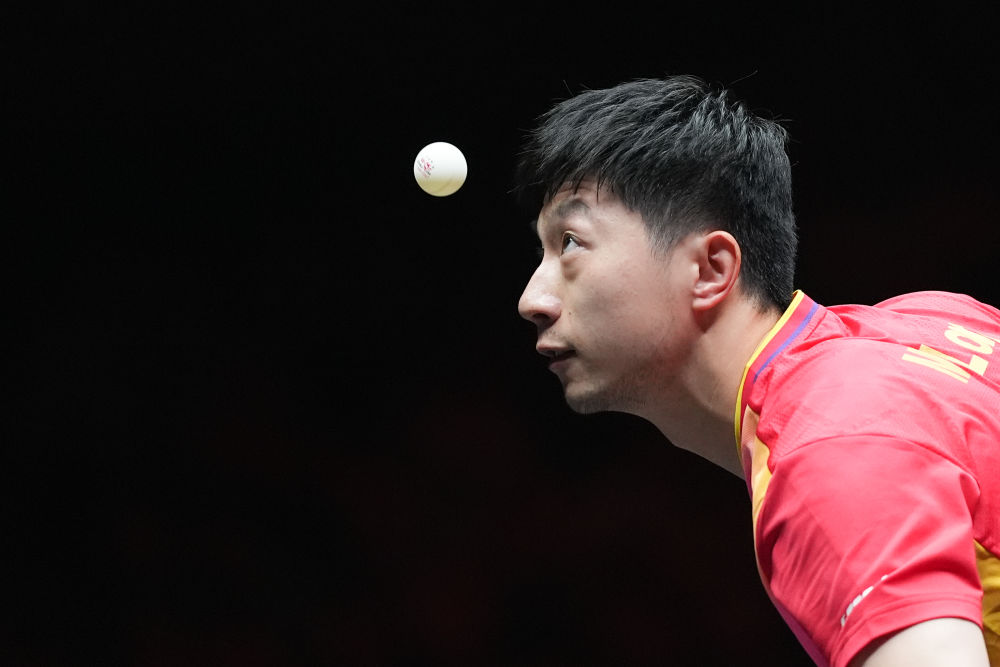 10月6日,馬龍在比賽中發(fā)球。新華社記者 鞠煥宗 攝