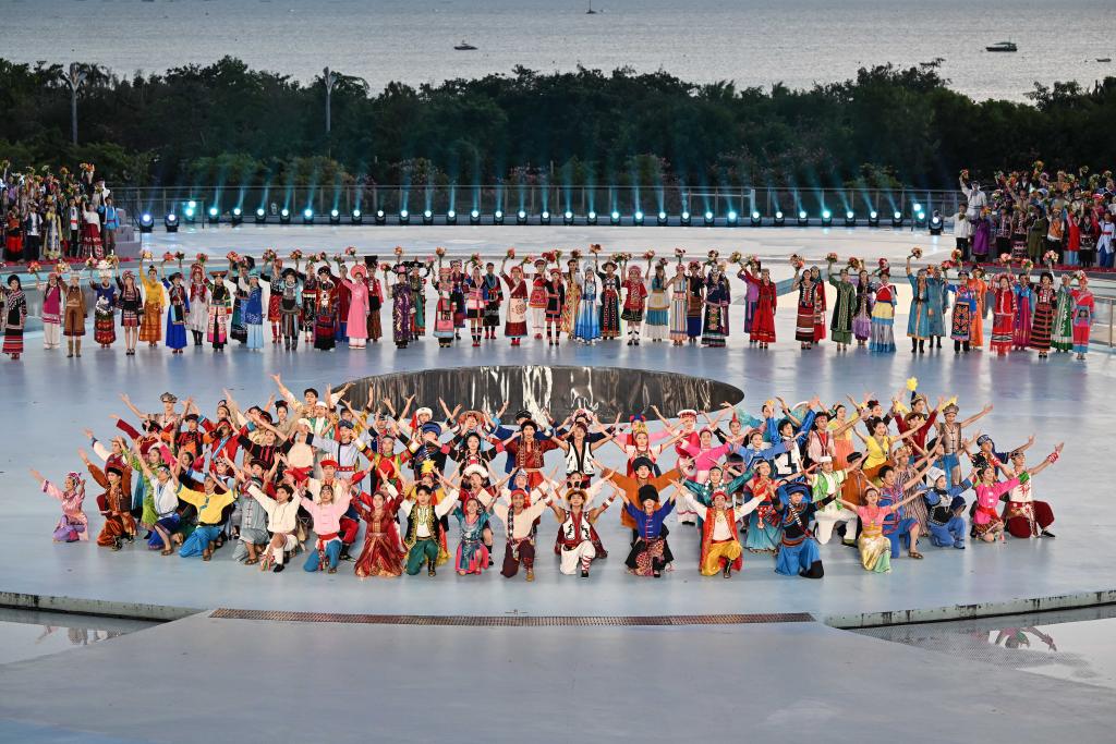 這是11月26日拍攝的聯(lián)歡晚會(huì)現(xiàn)場(chǎng)。當(dāng)日,第十二屆全國(guó)少數(shù)民族傳統(tǒng)體育運(yùn)動(dòng)會(huì)民族大聯(lián)歡活動(dòng)在海南省三亞市舉行。新華社記者 郭程 攝