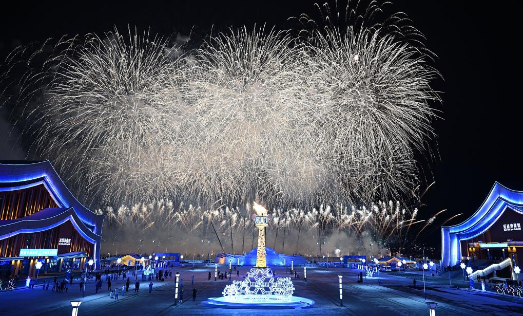 2月17日,第十四屆全國冬季運動會主火炬在開幕式上被點燃。新華社記者 連振 攝