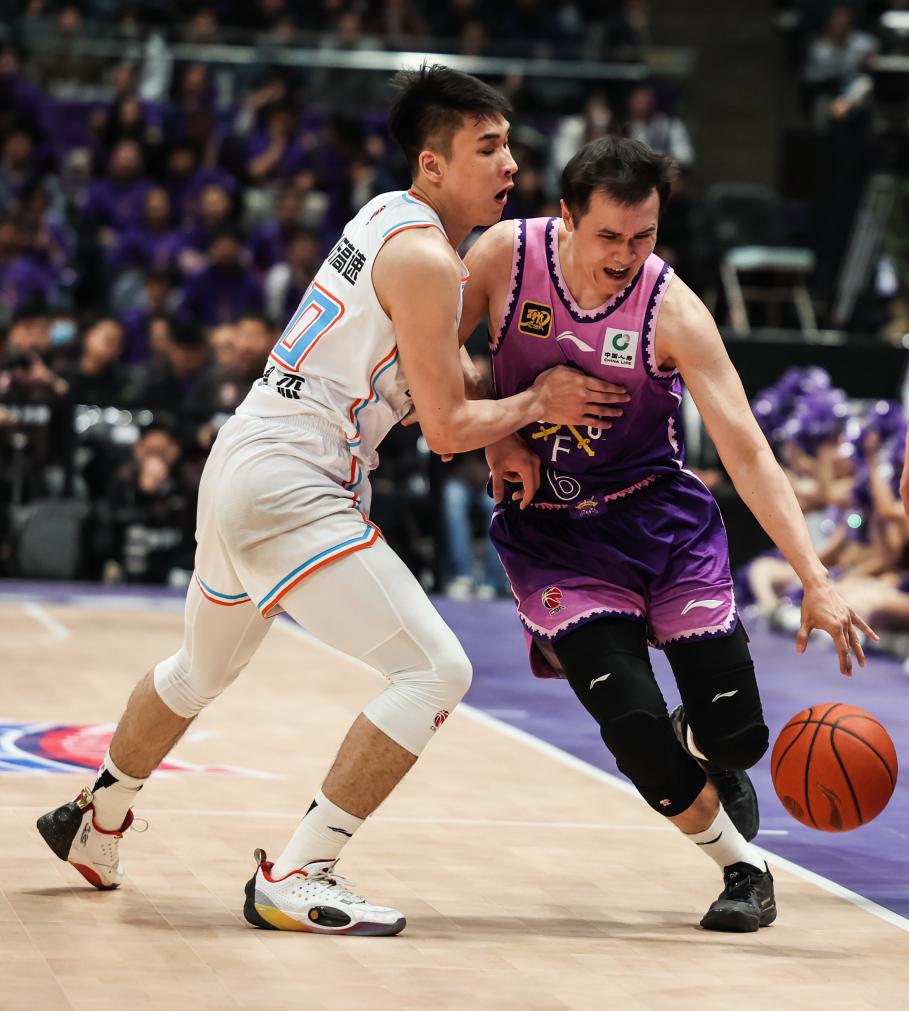 4月8日,北控隊(duì)球員張帆(右)在比賽中突破。新華社記者 王楷焱 攝