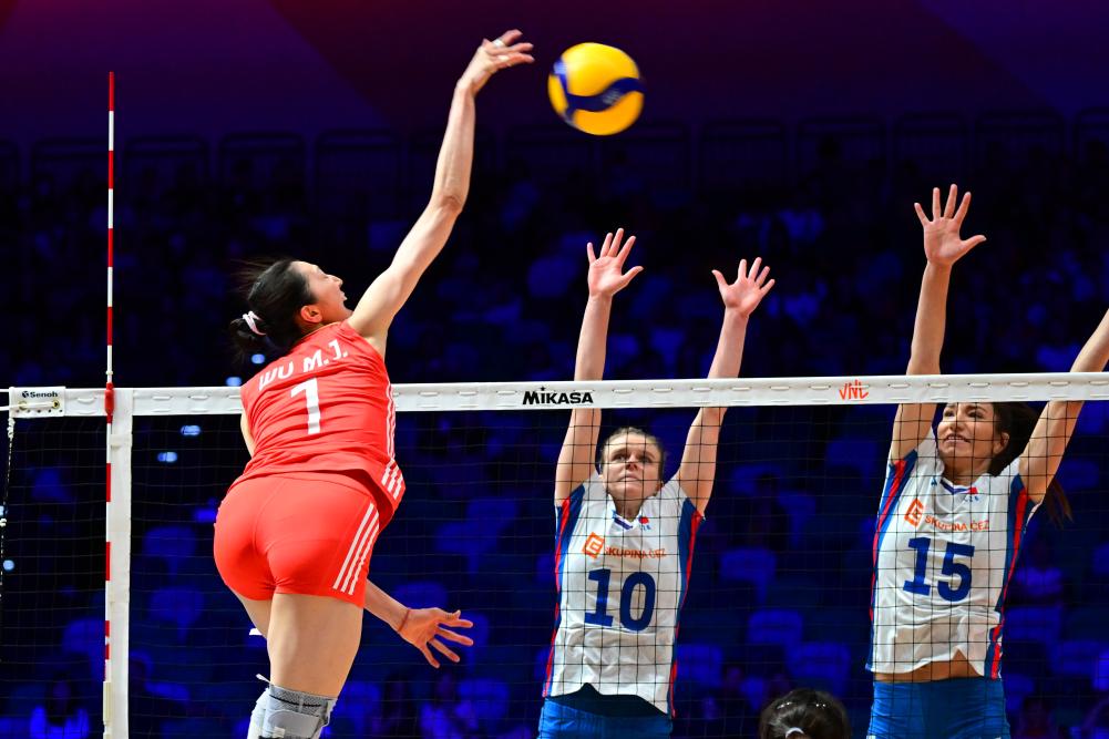 面對捷克隊的攻勢,中國隊主教練趙勇提醒隊員放開進(jìn)攻,“不能保守”。果然,中國隊氣勢上壓倒對手,以25:15拿下第三局。